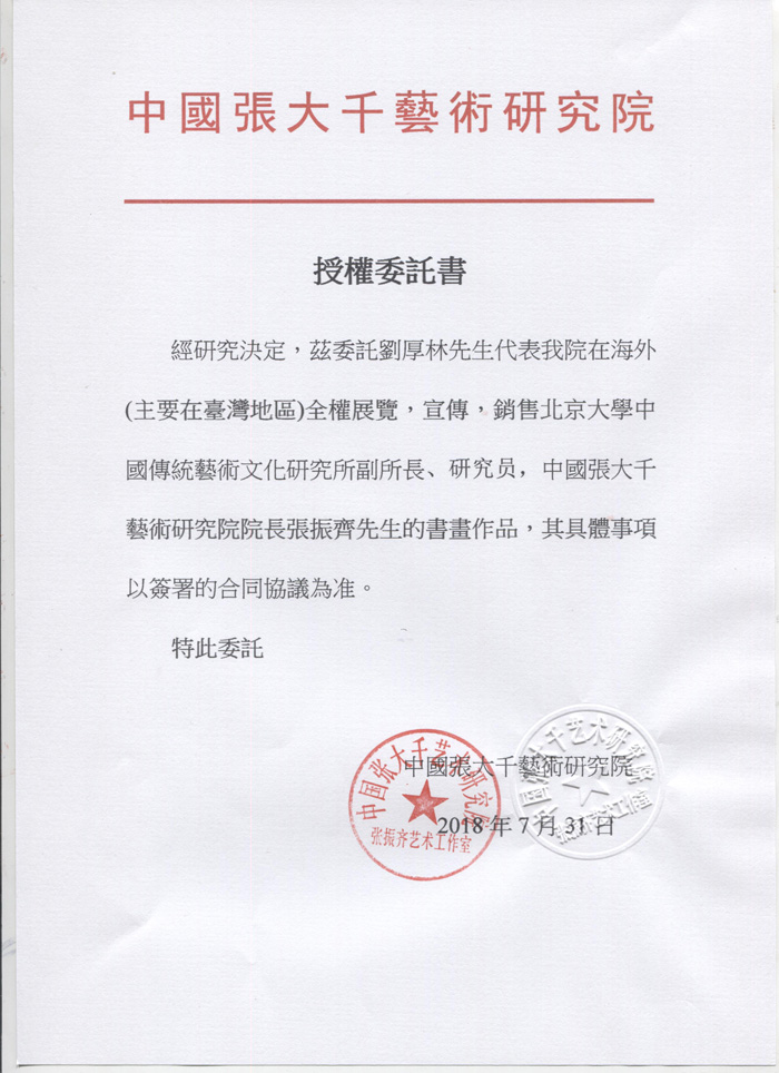 中国张大千艺术研究院授权委托书
